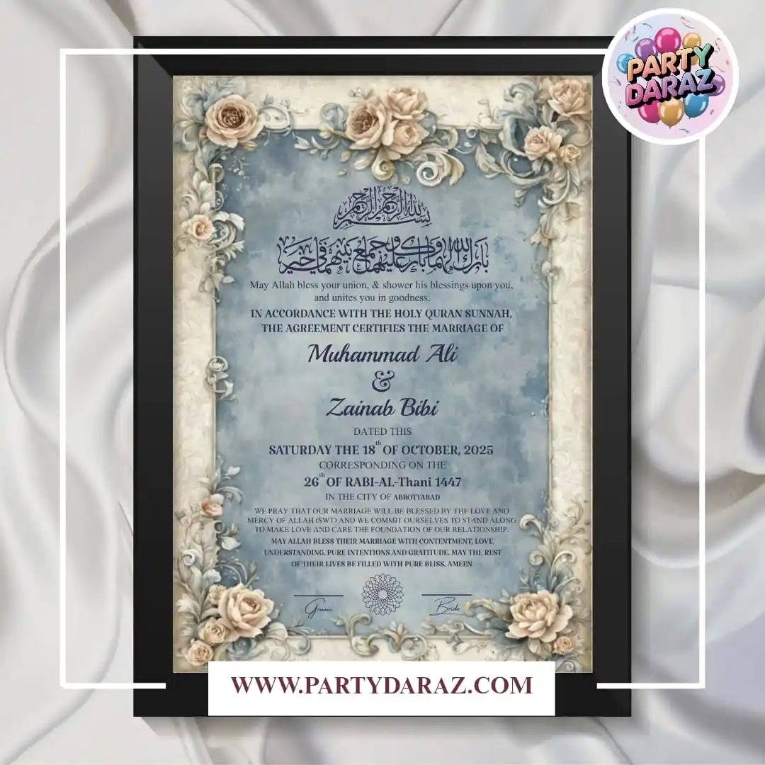 Order your Personalized Nikah Certificate Frame today from PartyDaraz.com and cherish your blessed union forever.